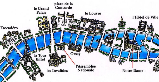 Top sights on Seine River banks, Paris